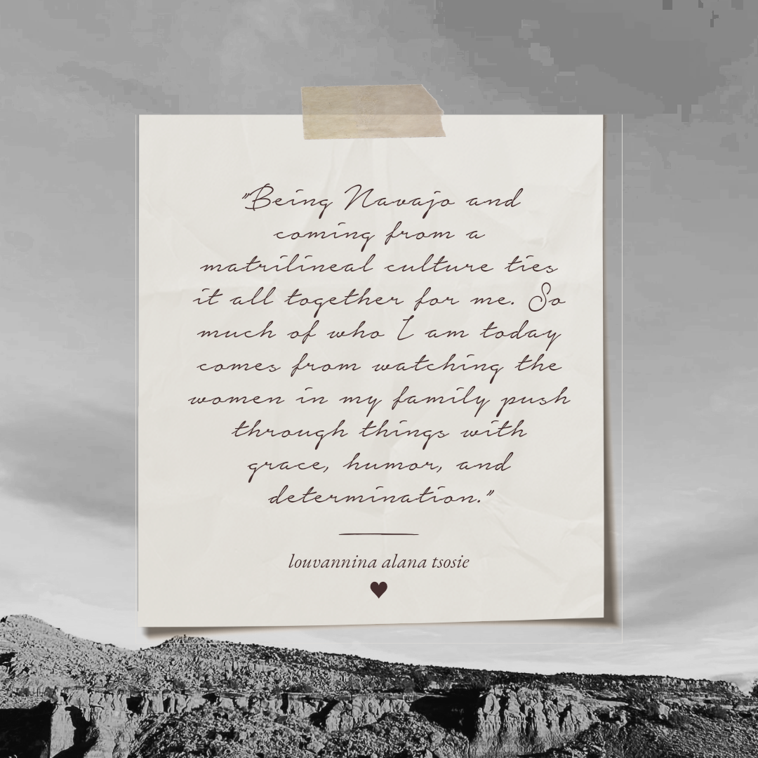 As the youngest of her siblings, she grew up watching the women in her life strive to be the best. From the enduring legacy of her late másání to the daily examples set by her mother, sisters, and aunties, she learned to navigate the world with integrity.